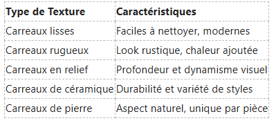 Q: Comment harmoniser les textures des carreaux avec les autres éléments de décor ?