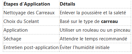 Il est crucial de suivre les étapes d'application avec soin pour garantir un processus efficace. Si vous ne suivez pas les consignes comme le temps de séchage, cela peut compromettre l'efficacité du scelant. This.