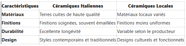 Analyse Comparative : Céramiques Italiennes vs. Céramiques Locales